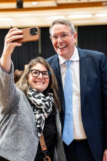 Die größte örtliche Herausforderung sei derzeit die Organisation einer tragfähigen Zukunft für das Prümer Krankenhaus. Der Bedarf und die Notwendigkeit dieser Einrichtung stünden außer Frage, zumal dort eine vorbildliche Arbeit geleistet werde, betonte Nico Steinbach. Er werde sein seit mehr als zehn Jahren bestehendes Engagement weiterhin mit Nachdruck fortsetzen, um eine gute und nachhaltige Lösung zu erreichen.Diese Haltung lebten beide Politiker auch im Anschluss and en offiziellen Teil: Ihnen war es sichtlich wichtig, sich Zeit für persönliche Gespräche zu nehmen. Viele Gäste nutzten die Gelegenheit zum Austausch oder für ein gemeinsames Selfie mit dem Ministerpräsidenten. Der Neujahrsempfang war ausdrücklich offen für alle Bürgerinnen und Bürger des Eifelkreises, was viele gerne annahmen. Die große Beteiligung und die volle Karolingerhalle zeigten eindrucksvoll: Das Interesse an politischem Dialog, Verantwortung und der Zukunft der Region ist groß.